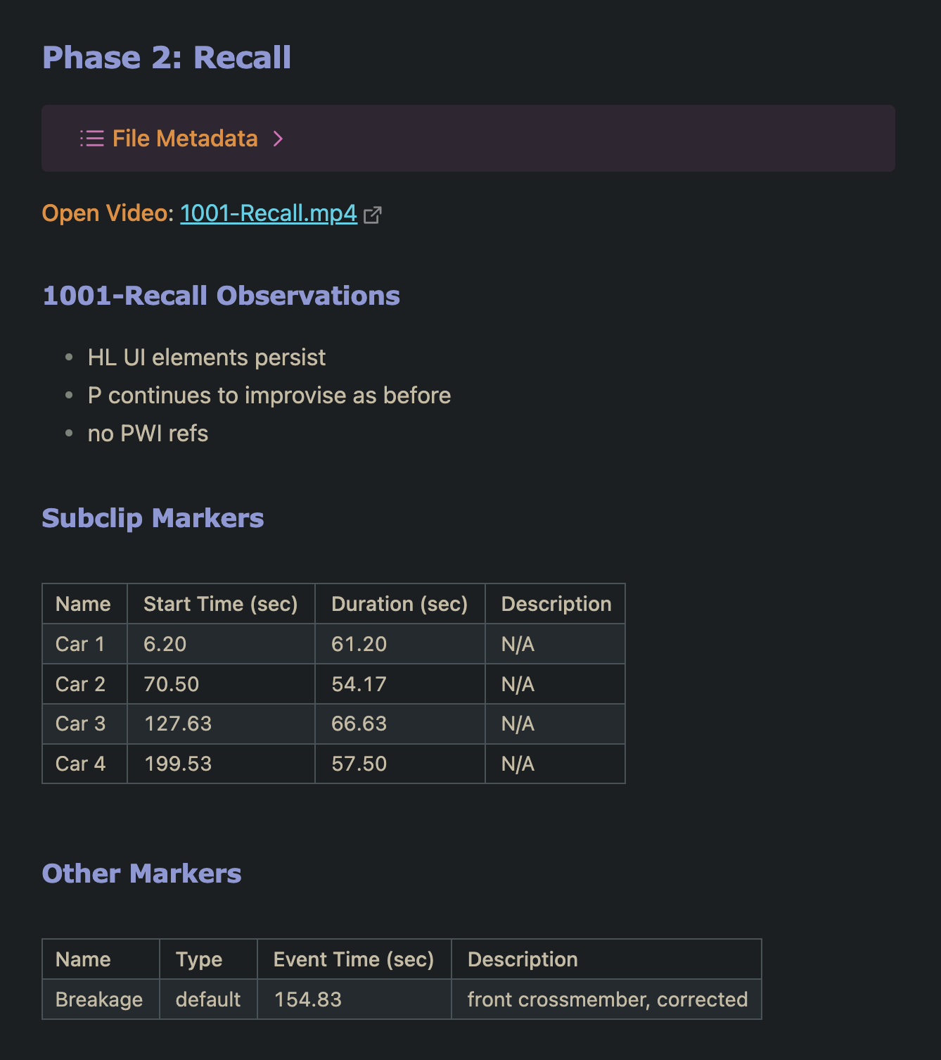 - Times is the final version of the data extracted from video annotations, including child events, with event type and category.